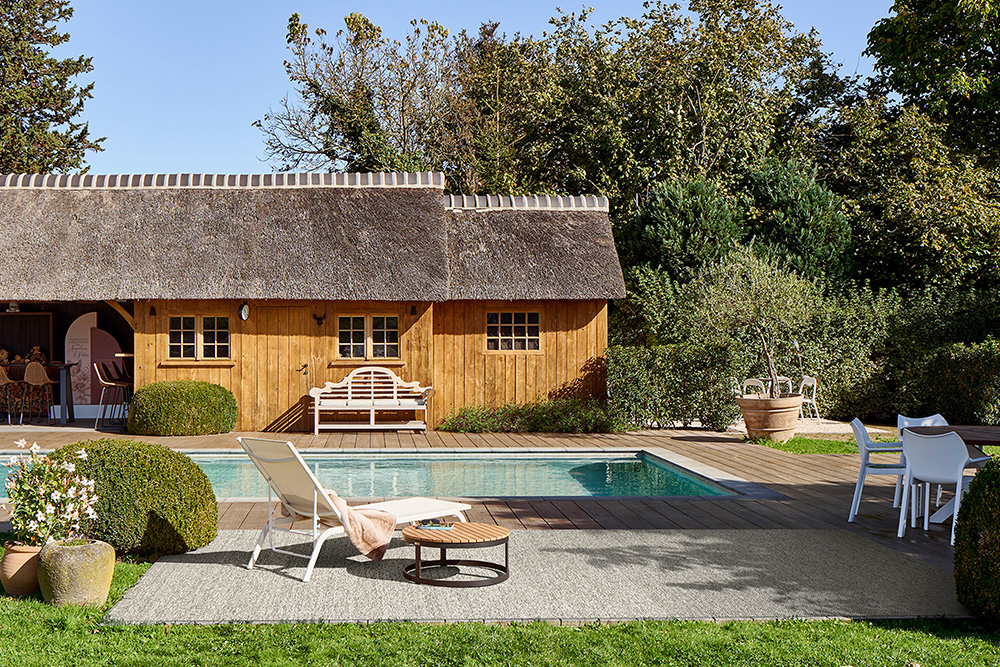 TIPS! Tänk på att mattan kan krympa 1-2 % på både bredd och längd. Lägg därför på en krympmån för detta i början. Efter första sommaren, som den har legat framme, kan man sedan skära till den mer exakt efter rummets väggar. Eftersom det framförallt är en utematta så har den en tendens att ”bubbla” sig om man lägger den i exempelvis ett uterum som kan bli väldigt varmt, detta lägger sedan ut sig när temperaturen blir lägre igen.