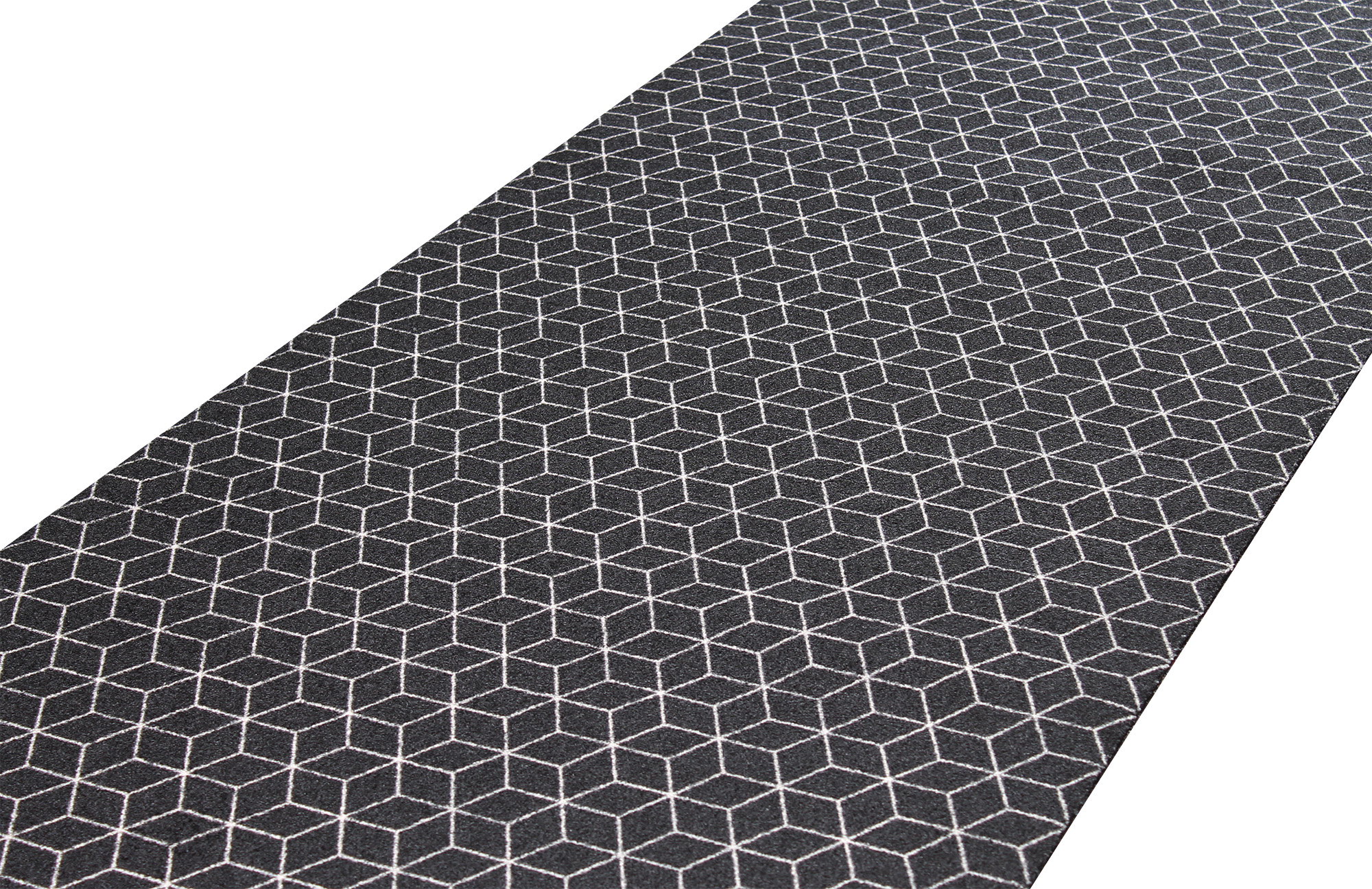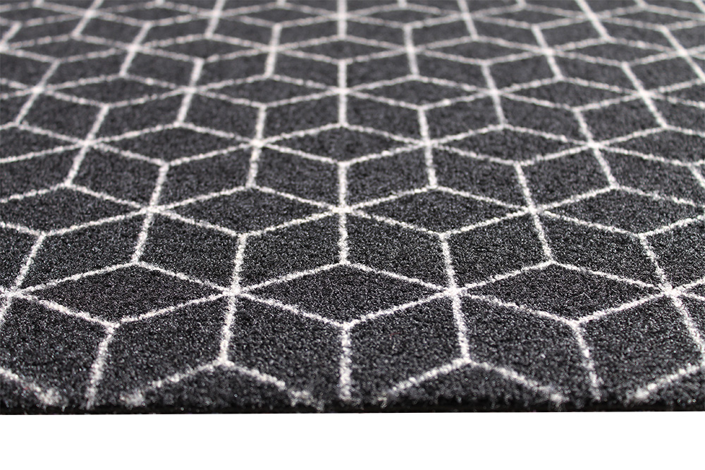 Cube Antracit är en mjuk & slitstark entrématta på metervara med skuren lugg i 100% PA. Luggfibern har en väldigt bra absorberingsförmåga, vilket är fördelaktigt när man kliver in i hallen med blöta skor. Mattans mönster gör även så att ögat inte uppfattar varenda litet gruskorn som man kan ha dragit med sig in. Den halkfria gummerade TPE-baksidan gör att mattan ligger väldigt stabilt mot underlaget och skyddar golvet mot smuts och väta. Dessutom är Cube väldigt lätt att dammsuga samt att den går att köra i maskintvätt på 30°C för lättast möjliga renhållning. Mattan är 100 centimeter bred och erbjuds på metervara vilket gör att du kan anpassa längden efter just ditt utrymme. Cube går dessutom att klippa/skära i, på både längd och bredd, om du behöver anpassa mattans mått ytterligare.