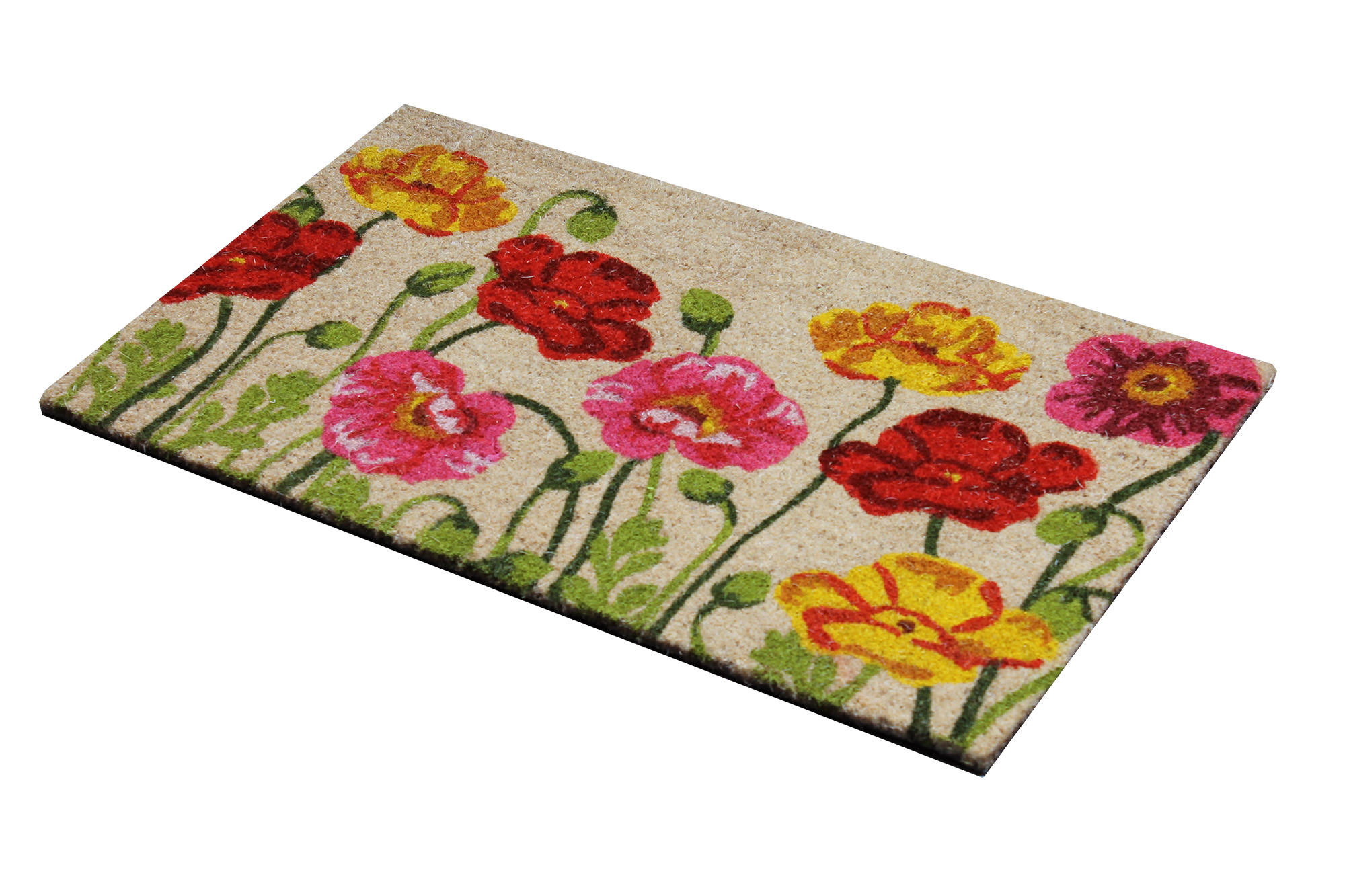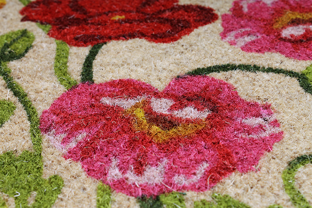 Kokos Sommaräng är en entrématta i 100% kokos för inom- & utomhusbruk (Under tak) i ett färgrikt blomstermönster. Kokosborsten fångar upp grus och smuts och vinylbaksida skyddar golvet från väta samt ger stabilitet mot underlaget.