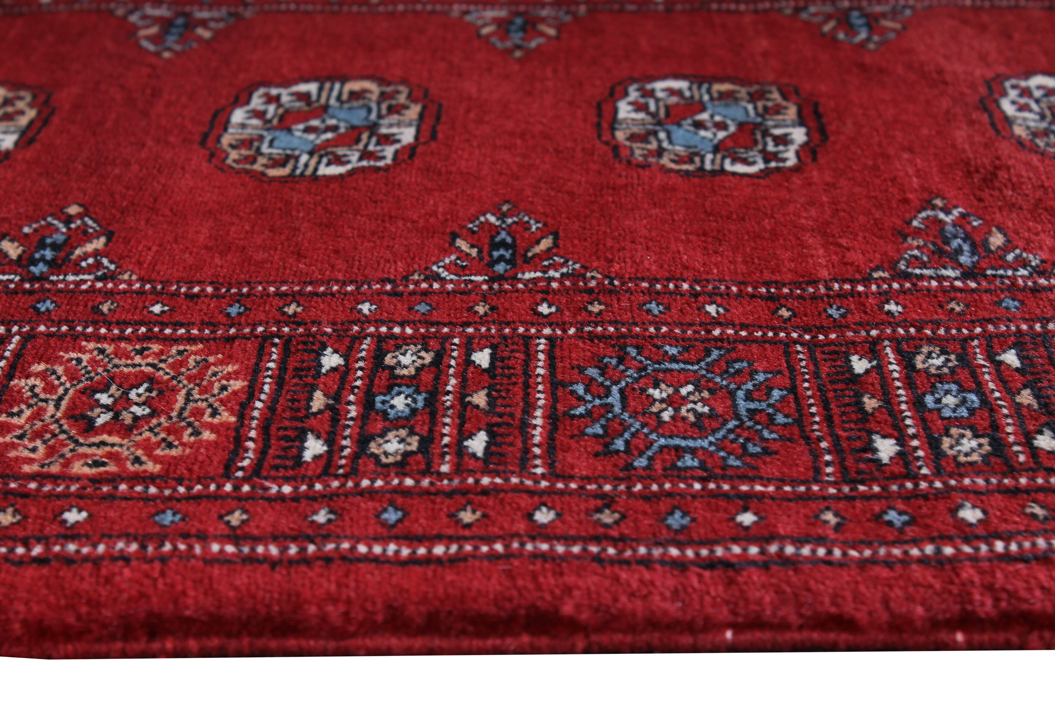 Pakistan Bochara Röd 81×259 cm är en klassisk handknuten gångmatta i 100% ull från Pakistan med bocharamönster. Bomullsvarp med fransar och otroligt fin lyster. Ullfibern speciella egenskaper gör att den stöter ifrån sig smuts, vilket gör mattan betydligt lättare att dammsuga och hålla ren.
