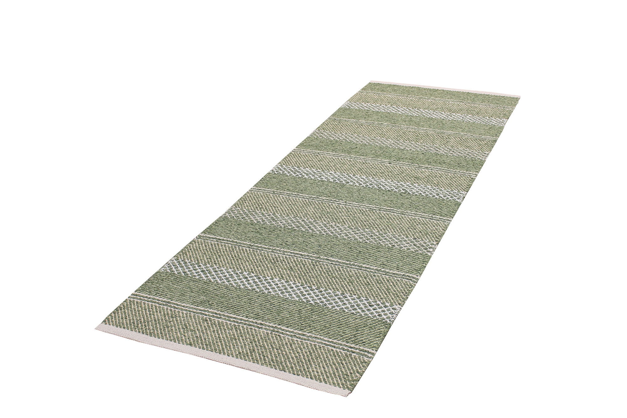 Sia Mix Grön är en svensktillverkad maskinvävd plast- och garnmatta från Horredsmattan i mixat material, 50% bomull, 40% PVC (Phtalat fri) och 10% polyester. Mattan är vändbar med lite annorlunda mönsterbild på baksidan, se bilder. Blandningen av material gör den mjuk och skön att gå på samtidigt som den är lätt att torka av eller att maskintvätta i 30 °C. Man ska alltid lufttorka tvättade tras-/garnmattor hängandes med rändernas riktning vertikalt så att färgerna inte går in i varandra efteråt.
