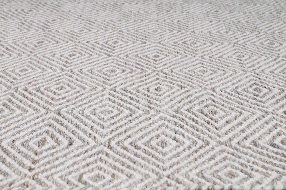 New Venus Sand är en handvävd ullmatta/röllakan i en modern tappning av det klassiska gåsöga-mönstret. Mattan är tillverkad i 100% ull från Nya Zeeland som är vändbar och utan fransar. Ullens smutsavvisande och slitstarka egenskaper passar perfekt för användning i mer utsatta miljöer så som: under matsalsbordet eller i vardagsrummet. Vi rekommenderar att man alltid lägger mattglidskydd undertill så att den ligger plant utan halkrisk.