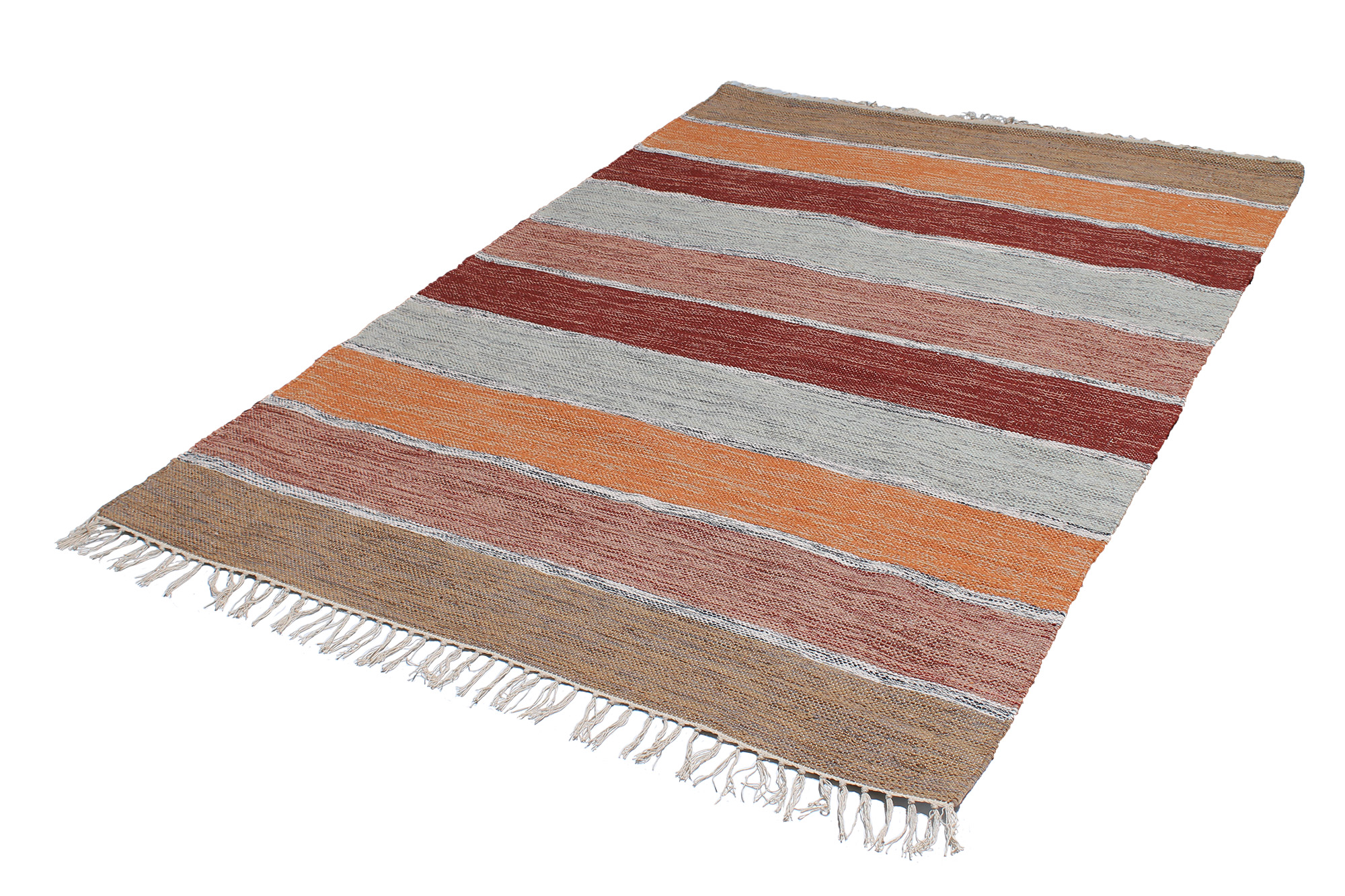 Torekov Earth/Multi är en klassisk handvävd bomullsmatta i randigt mönster i 100% bomull med fransar. Går utmärkt att lägga under köksbordet, framför diskbänken, i tvättstugan eller varför inte i sommarhuset. Maskintvättbar i 30°C, torkas alltid hängandes i rändernas riktning så att inte färgerna går in i varandra efteråt.
