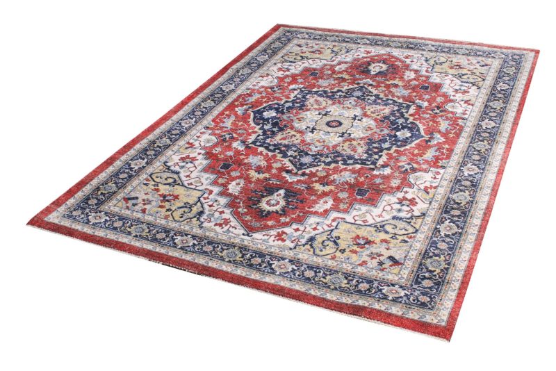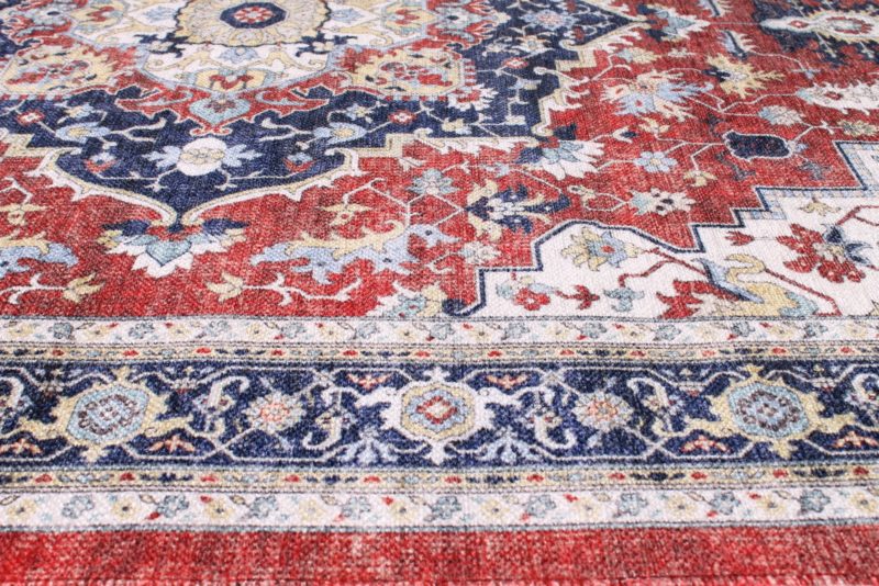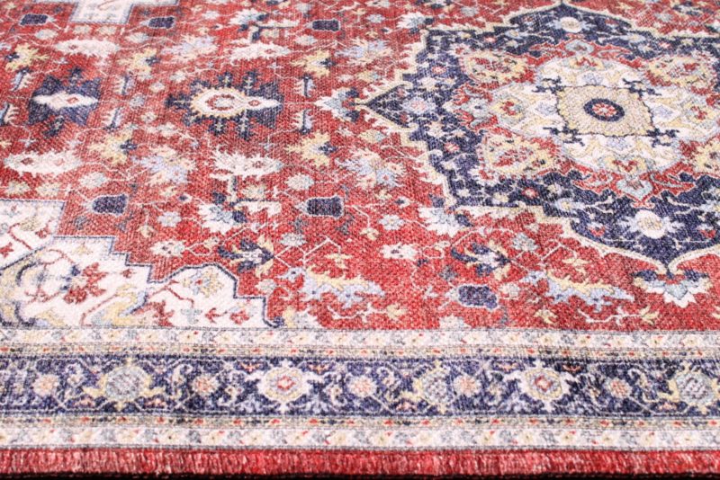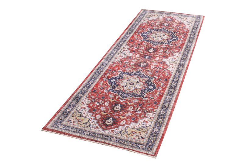 Sivas Röd är en maskinvävd konstsilkematta med fin lyster och vattenfast tryckt orientaliskt mönster. Den har kort skuren lugg i 100% PES med korta fransar. Trots att mattan är tunn gör den vävda baksidan att den ändå ligger väldigt plant och fint. Mattans tryckta medaljongmönster och vackra färgkombinationer har inspiration från Orienten. Går att beställa i flera olika storlekar.