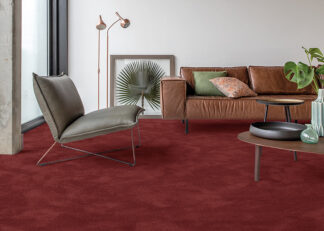 Cloudy Vinröd 14 är en kortklippt velour-heltäckningsmatta med twistad skuren matt ...