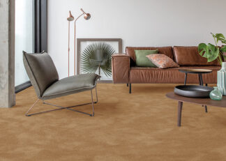 Cloudy Senapsgul/Ljusbrun 54 är en kortklippt velour-heltäckningsmatta med twistad skuren matt ...